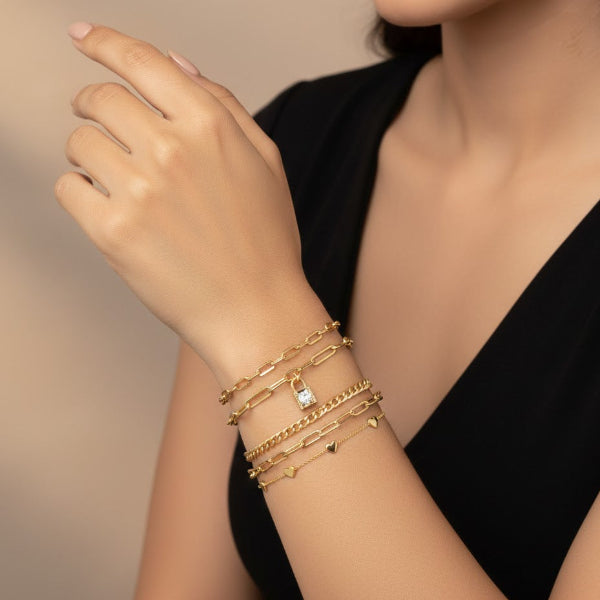 Gold Heart Charm Bracelet - Luxury Heart Link & Crystal Chain Jewelry