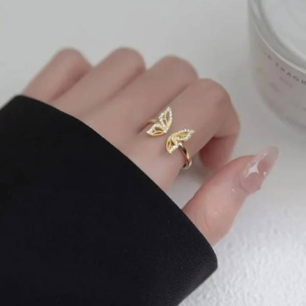 Gold Butterfly Ring – Blue Crystal Adjustable Sparkly Ring for Her