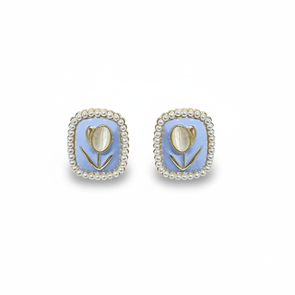 Blue Tulip Earrings - Vintage Stud Jewelry & Pearl Border Earrings