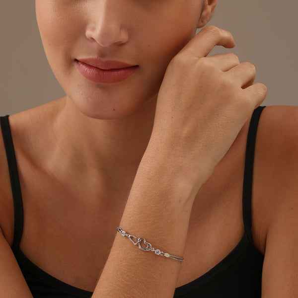 Elevate your style with this exquisite Silver Bracelet, featuring a delicate Heart Link design and brilliant accents of Cubic Zirconia. This piece captures the essence of romance and timeless elegance, making it the perfect treasure for yourself or a loved one. Expertly crafted for a luxurious feel, it’s a stunning accessory that adds a touch of sparkle to any moment. Experience the subtle, dazzling beauty of premium jewelry.