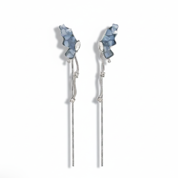 Butterfly Tassel Earrings | Dainty Silver Long Drop Crystal Jewelry