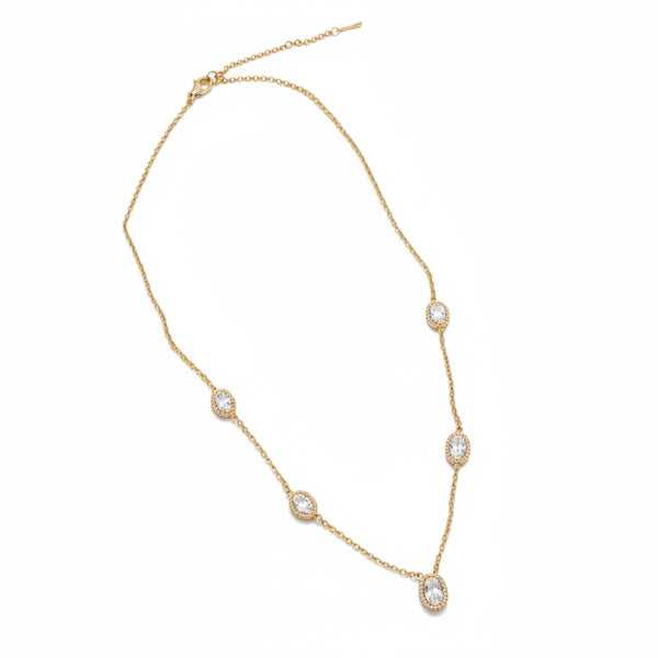 Gold Crystal Station Necklace | Dainty Oval Charm Everyday Jewelry