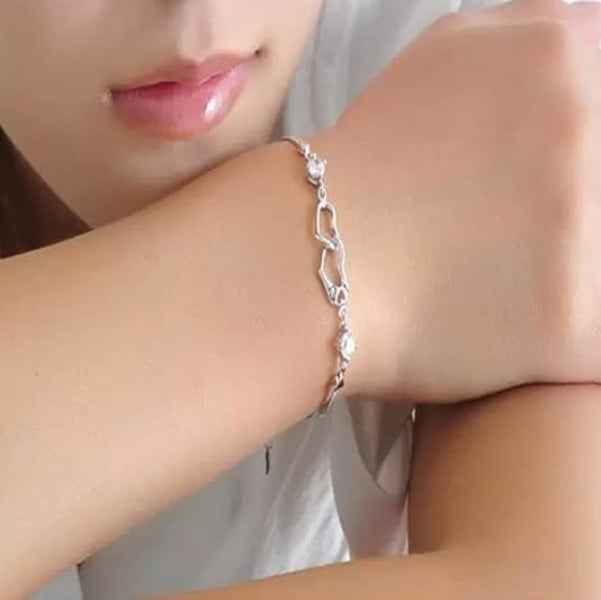 Elevate your jewelry collection with our Silver Heart Dangle Bracelet, a perfect combination of elegance and charm. Crafted with high-quality sterling silver, this bracelet features delicate heart-shaped charms adorned with radiant cubic zirconia stones that sparkle from every angle. Whether you're dressing up for a special occasion or adding a touch of shine to your everyday outfit, this chic bracelet is designed to impress. This Silver Heart Dangle Bracelet makes a thoughtful gift for anniversaries, birthdays, or any celebration. Its adjustable chain ensures a comfortable fit for all wrist sizes, and the lightweight design allows effortless wear all day. Pair it with matching earrings or necklaces to complete a stunning look.